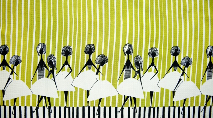 fabric, 1964The colourful decorative fabrics by Aleksandra Michalak-Lewińska, Alicja Wyszygrodzka, Danuta Paprowicz-Michno, and Danuta Teler-Gęsicka are an undoubted hit of the exhibition, and contribute to its energetic and youthful atmosphere. The optimistic patterns, abstract designs, spindle-like forms, simplified human figures, and naïve animal shapes are a testament to the enthusiasm of their creators and their eagerness to have fun and enjoy life. Although half a century old, these pieces have not grown in the least bit retro.